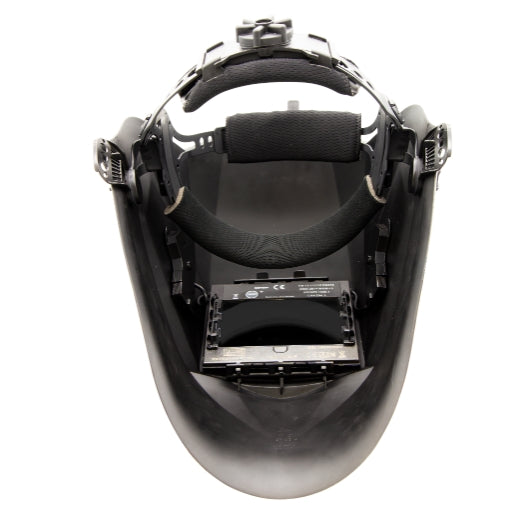 - Außenliegende, einstellbare Delay-/Aufhellverzögerung sorgt dafür, dass nach dem Abschalten des Lichtbogens die Blendschutzkassette noch ausreichend geschlossen bleicht, um ein Verblenden der Augen durch das Nachglühen der Schweißnaht zu verhindern.